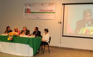 Vicerrector de la UNNE Med. Vet. Elvio Eduardo Rios; Decano de FADyCC Mg. Prof. Federico Alfredo Veiravé; Ministra de Turismo de la Provincia de Corrientes, Arq. Inés Presman; Presidente Instituto de Turismo del Chaco, Lic. Mora Dicembrino y Directora del Área de Ciencias de la Cultura de FADyCC Mg. Arq. María Teresa Alarcón
