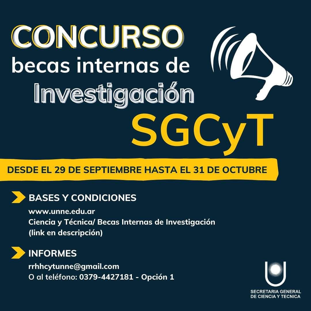 Convocatoria al Concurso de Becas de Investigación de la SGCYT - UNNE, a partir del 29 de